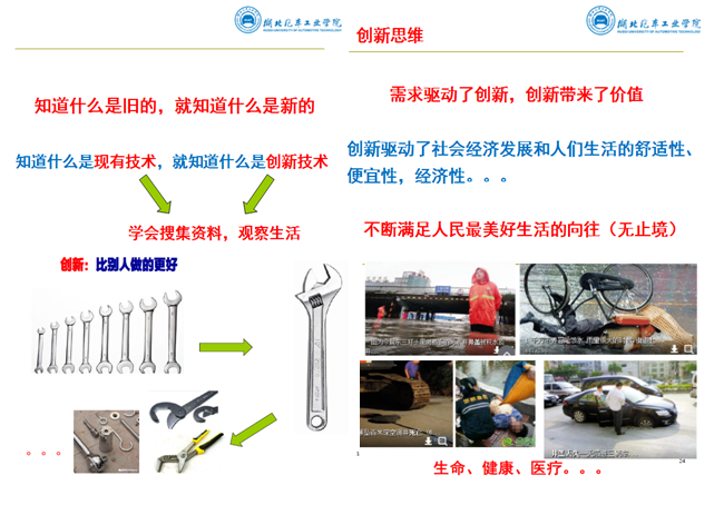 什么是创新?创新从哪里来?王教授引用著名教育学家陶行知先生的名言“处处是创造之地,天天是创造之时,人人是创造之人”,强调工作、生活中要善于发现问题,发现问题比解决问题更重要;明确创新的意义与价值,关系到生命、健康、医疗、助老、助残、节能、环保等领域的创新,不仅迫切,而且意义与价值重大。王教授通过大量生动详实的案例,讲解了创新的分类,包括:(1)原始创新,从无到有(颠覆性技术创新);(2)移植创新、技术共享(行业间);(3)组合创新、功能的叠加(巧妙);(4)进化(变异)创新、适应新需求;(5)改进创新、人有我优。王教授还结合自己指导的学生师生共创“第一个机械式定通量阀的发明”的例子,说明创新改变学生的人生——学生毕业后在国内四大专利事务所之一从事专利代理职业,为华为、格力等高端客户服务,师生共创建立了深厚的师生情谊。