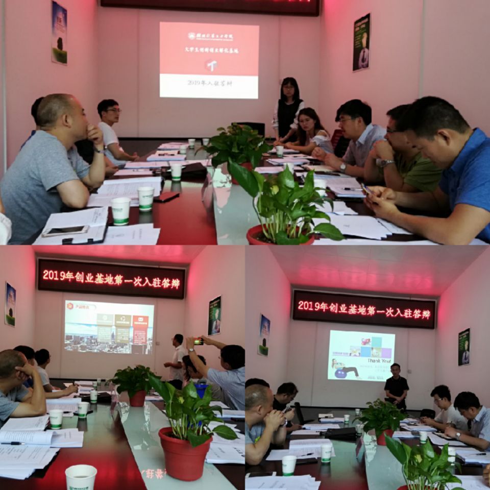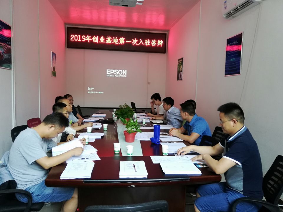 2019年6月12日下午,在创业基地会议室举办了关于新企业的入驻答辩会。出席会议的有十堰职业技术学院创业学院院长林辉山、十堰市劳动就业训练中心工会主席张强、湖北惠众科创园有限公司总经理张义、双创学院院长缪勇、机械学院教授王永泉、经管院教授周明智、经管院教授程曾平、电信学院学科办主任李发海以及杰出校友和学生组织代表等。来自全校的十二支创业代表队参加答辩。