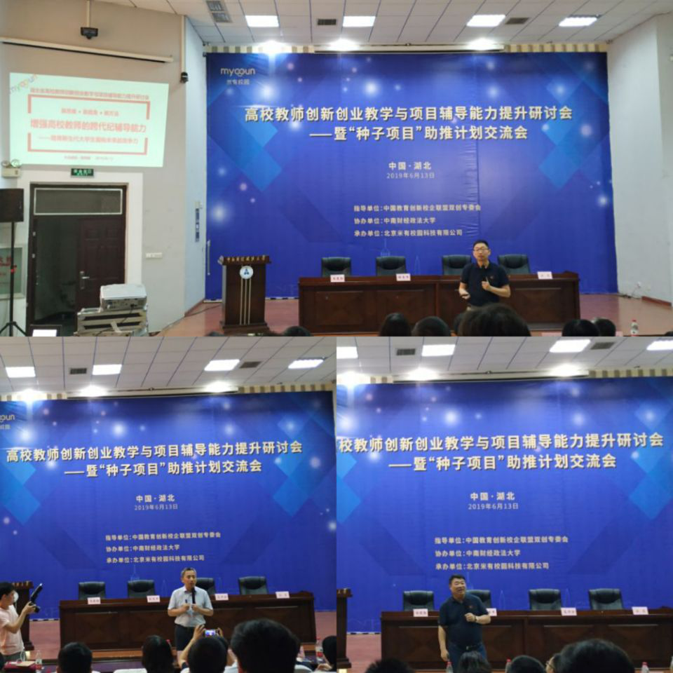 2019年6月13日下午,湖北省高校教师创新创业教学与项目辅导能力提升研讨会在中南财经政法大学举办。省内高校创新创业相关教师、课程骨干、管理人员等参加会议。我校派出学科竞赛指导老师、专业课教师、互联网+大赛指导老师等6人参会。