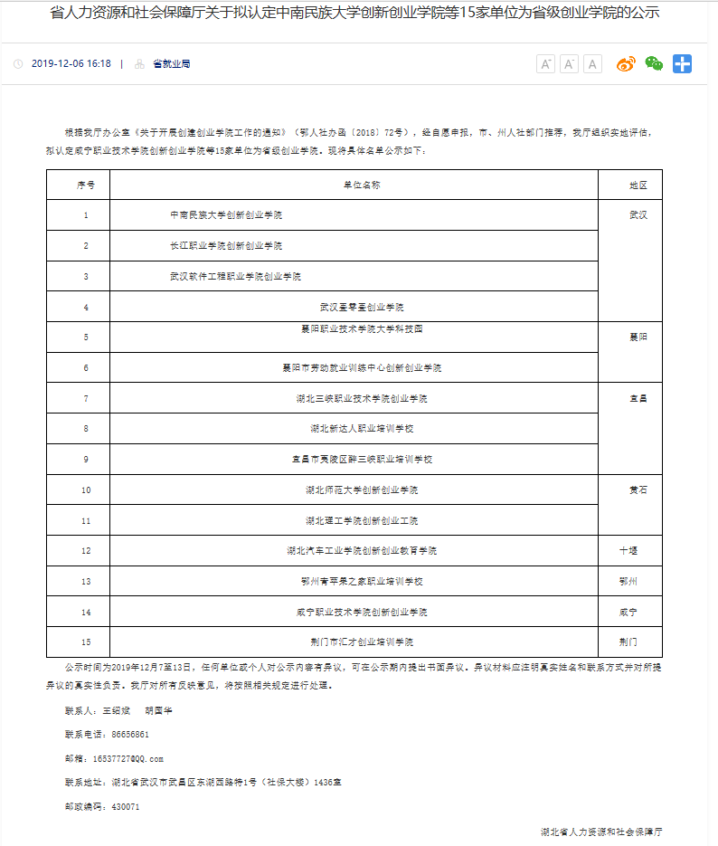 近日,湖北省人力资源和社会保障厅公布了全省“省级创业学院”名单,共有15家单位入选,william威廉中文名列其中,这是该院创新创业工作再获的一大殊荣。