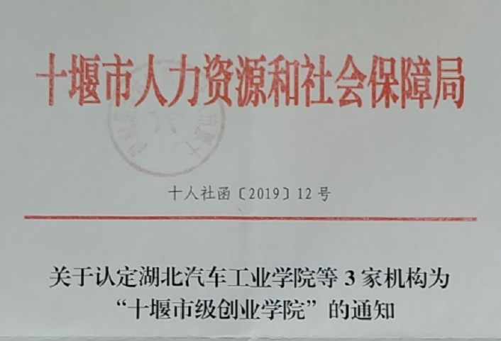 2019年学校双创学院先后获得“十堰市创业学院”、湖北省人力资源保障厅“省级创业学院”称号,创业基地管理团队荣获全国高校百强社团称号。