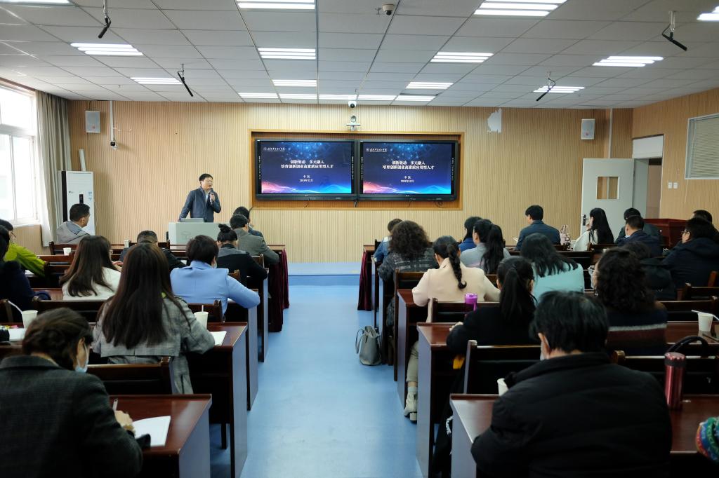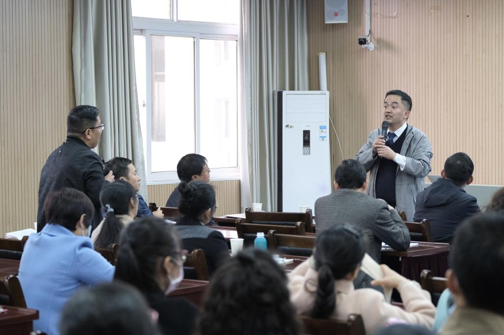 教务处王进处长最后做了主题发言。他首先对两位专家的精彩分享表示感谢,认为此次分享具有前瞻性、实践性和引领性。结合学校和教师发展,他从有想法、有干劲、有韧性、有探索、强协作,多交流等方面展开,希望教师们能自觉将个人发展与学校发展、国家需要紧密结合起来,爱岗敬业、倾情奉献、选准课题、大胆探索、积极创新、持之以恒,深入推动学校课程建设,不断提高育人质量。