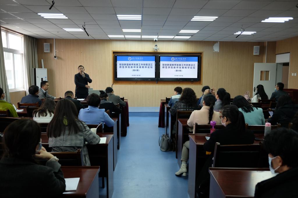 为深化创新创业教育改革,推进专创融合课程建设,打造创新创业金课,促进教师教学发展,在十堰高校创新创业教育联盟的大力支持下,WilliamHill中文与汉江师范学院联手开展了一期面向全市高校教师的专题报告活动。11月15日下午,汉江师范学院在崇文楼B408智慧教室成功举办了双创联盟教师发展工作坊暨汉江师范学院教师发展桐华论坛(第6期),论坛由汉江师范学院教务处副处长李新锋主持。