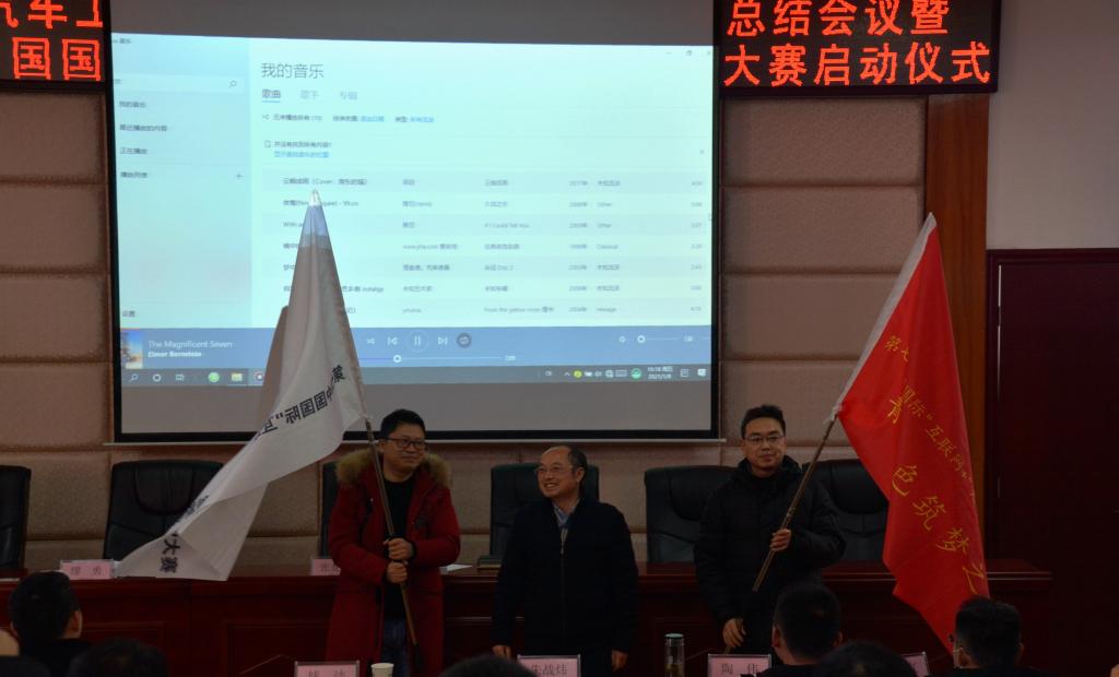 第七届互联网+中国国际大学生创新创业大赛WilliamHill中文校赛启动仪式阶段中经济管理学院副院长李建忠宣读第七届互联网+大赛校赛工作安排。张友兵副校长向校赛两个承办方代表—经济管理学院院长钱洁授主会旗、向外国语学院院长朱战炜授青年红色筑梦之旅会旗。