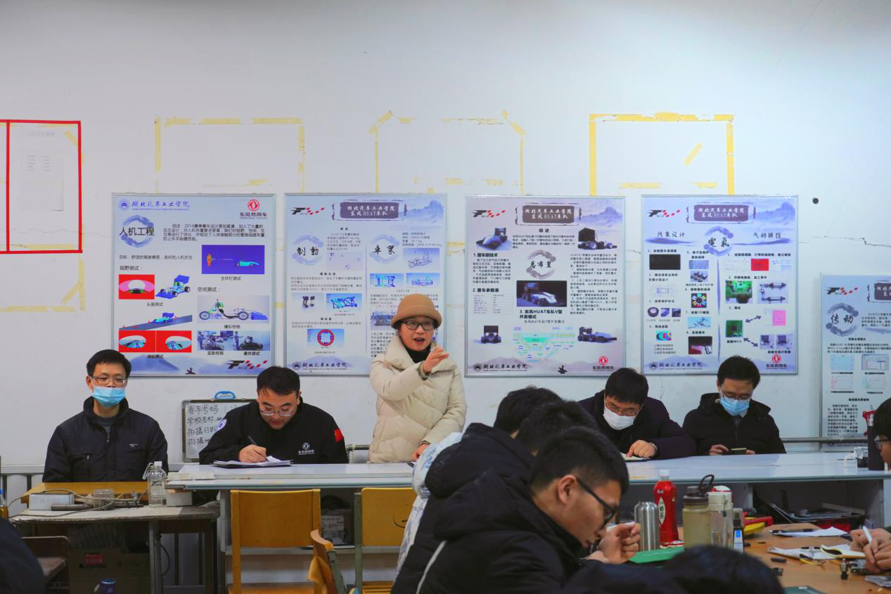 活动上,我校东风HUAT车队指导教师金家琛首先强调了新赛季的安全与疫情的防护工作,他指出2021年度HUAT车队应当继续发扬坚持不懈,精益求精的精神,老队员要起到模范带头作用,帮助新队员在寒假里开展工作,不忘初心,继续努力,现在距离2021年全国大学生方程式赛车的比赛不足300天,全体队员应该做好规划,利用好比赛前的每一天宝贵时间。