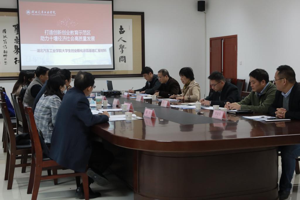 专家组一行实地查看了我校大学生创业孵化示范基地,在创业基地大院观看基地介绍视频,实地了解我校创业基地软硬件建设和创业文化环境营造,参观大学生创业企业知知茶、卓越新视界公司、十堰爱尚设计有限公司、十堰智享科技开发有限公司等代表性企业,参观创业基地创业文化走廊,以及我校东风HUAT方程式赛车工作室和师生共创企业代表十堰莱格思电源科技有限公司,并与创业师生代表进行了深入沟通交流。