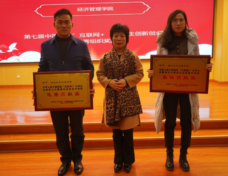 张红霞分别为经管学院、外语学院颁发颁发第七届互联网+大赛优秀组织奖、集体贡献奖。