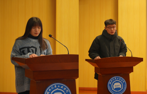 机械学院许婧璇(测控192、动力先锋社赛事部副社长)、材料学院刘寒冰分别代表学科竞赛团队骨干学生发言。许婧璇介绍了自己参加全国大学生工程实践与创新能力大赛的经历,参加学科竞赛可以培养自己的团队精神,学会分工合作友好相处,会磨练自己的意志,极大促进专业课学习;刘寒冰分享了在老师的指导下,自己与团队成员分工协作、反复修改打磨、反复演练最终获得第七届中国国际“互联网+”创新创业大赛全国铜奖的经历,一路走来,有过激动、也有过失望;有过收获、更有过成长。成绩只代表过去,我们还存在很多不足,这个荣誉也将成为引领我们向新的高度迈进的动力。