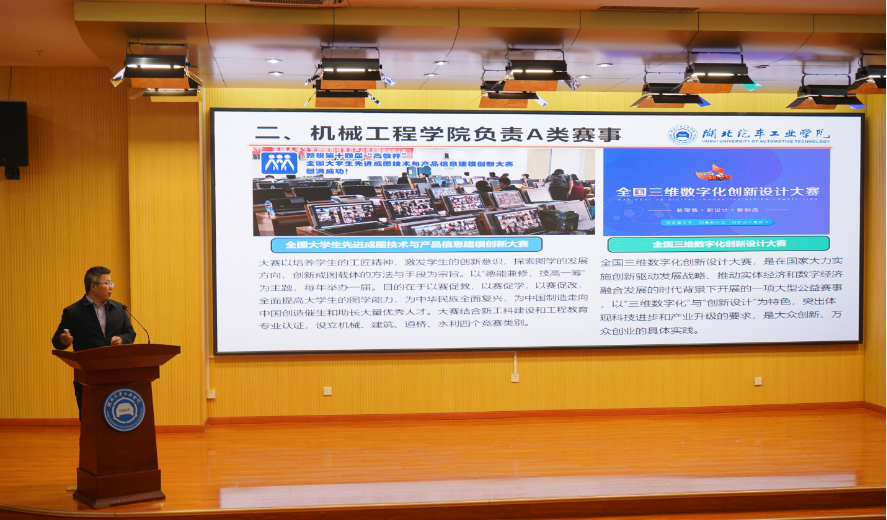 会上,陈君宝、李怀君分别代表机械学院、材料学院做二级学院学科竞赛经验总结发言。陈君宝从创新创业及竞赛的重要性、机械工程学院负责的A类赛事及2021年竞赛取得的成绩、创新创业及竞赛管理方案等四个方面做了总结发言,他指出,创新创业大赛是实施科教兴国、人才强国的一大重要举措;对学生来讲,参加竞赛可以长见识、锻炼思考能力、锻炼时间管理能力,由竞赛实践来提升动手能力及把理论知识实际应用;导师要做好引导工作,引导学生由竞赛者角色向自我进步角色转变;并从学生、导师、制度、激励四个方面介绍了机械学院创新创业及竞赛管理方案,提出了改进方案和解决思路。