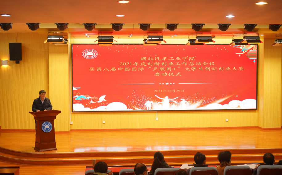 12月29日上午,学校在逸夫图书馆报告厅举行2021年度创新创业工作总结会议暨第八届中国国际互联网+大学生创新创业大赛校赛启动仪式,张红霞副校长出席会议并做重要讲话,出席本次活动的还有教务处处长李建、学工部部长陶伟,马克思主义学院党委书记杨高举、经济管理学院党委书记杨长春、数理与光电学院党委书记张默、体育课部主任余超,机械学院副院长陈君宝、电信学院副院长梅建伟、黄海波、汽车工程学院副院长刘成武,以及各学院双创联络员、二级学院学科竞赛师生代表、取得2021年SYB创业培训讲师资格的教师代表、双创学院全体人员等150余人参加会议。william威廉中文院长缪勇主持大会。