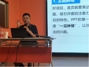 分享会上,张沪寅教授针对如何做好一个项目,提出了“六个可信”,即要在市场、技术、模式、产品、团队、前景等方面做到扎实可靠。同时,好项目还要满足“6+1特征”,要达到定位精准、逻辑清晰、内容丰富、形式专业等要求。随后,张教授分享了参加全国大赛的经验,并以他本人指导获得全国大赛的数个金奖项目作为案例,深入分析了相关参赛项目案例。他提到要做成精品项目绝非易事,其背后是团队精益求精的态度和勇于创新的精神。此外,张教授仔细讲解了参赛项目计划书的撰写要求。张教授讲课生动凝练,偶尔几句妙语引得大家欢笑阵阵。讲座最后,张教授与在场师生进行了深入的互动,并就师生提出的问题一一作了详细解答。