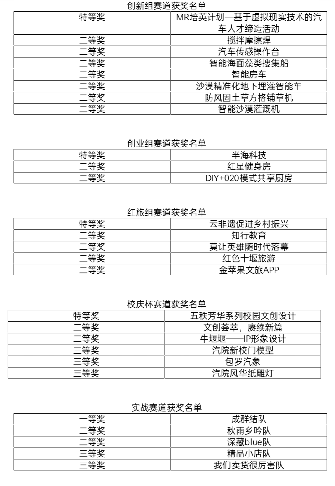 神,促进大学生走自主创业之路,实现以实践深化理论的培育目标。让更多的大学生投身创业,专注创新,提高自身的综合素质水平,锻炼个人的动手实践能力。赛后参赛学生纷纷表示通过大赛学习到了很多书本以外的知识技能,增强了自己克服困难、取得胜利的信心与勇气,同学们感谢指导本届比赛的评委老师们支持帮助。衷心祝愿汽院学子们能通过这次比赛的锻炼,在喜迎五十周年校庆之际,将创新精神和创业勇气付诸实践,创造属于汽院师生更加辉煌的明天!