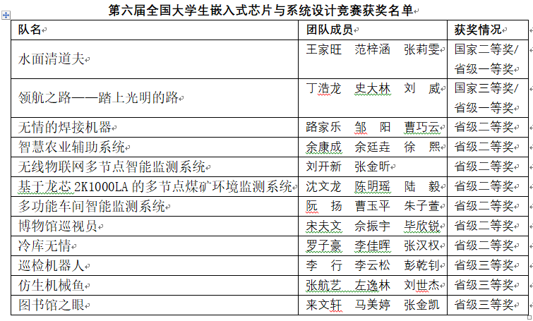 电气与信息工程学院在第六届全国大学生嵌入式芯片与系统设计竞赛中获省级一等奖2项,省级二等奖7项,省级三等奖3项,“水面清道夫” 和“领航之路——踏上光明的路”代表湖北省参加全国赛分获国家二等奖和国家三等奖;在2023年全国大学生电子设计竞赛中获国家二等奖1项、省级二等奖5项、省级三等奖8项;在2023年睿抗机器人开发者大赛中获全国总决赛二等奖并获湖北赛区优秀组织奖。