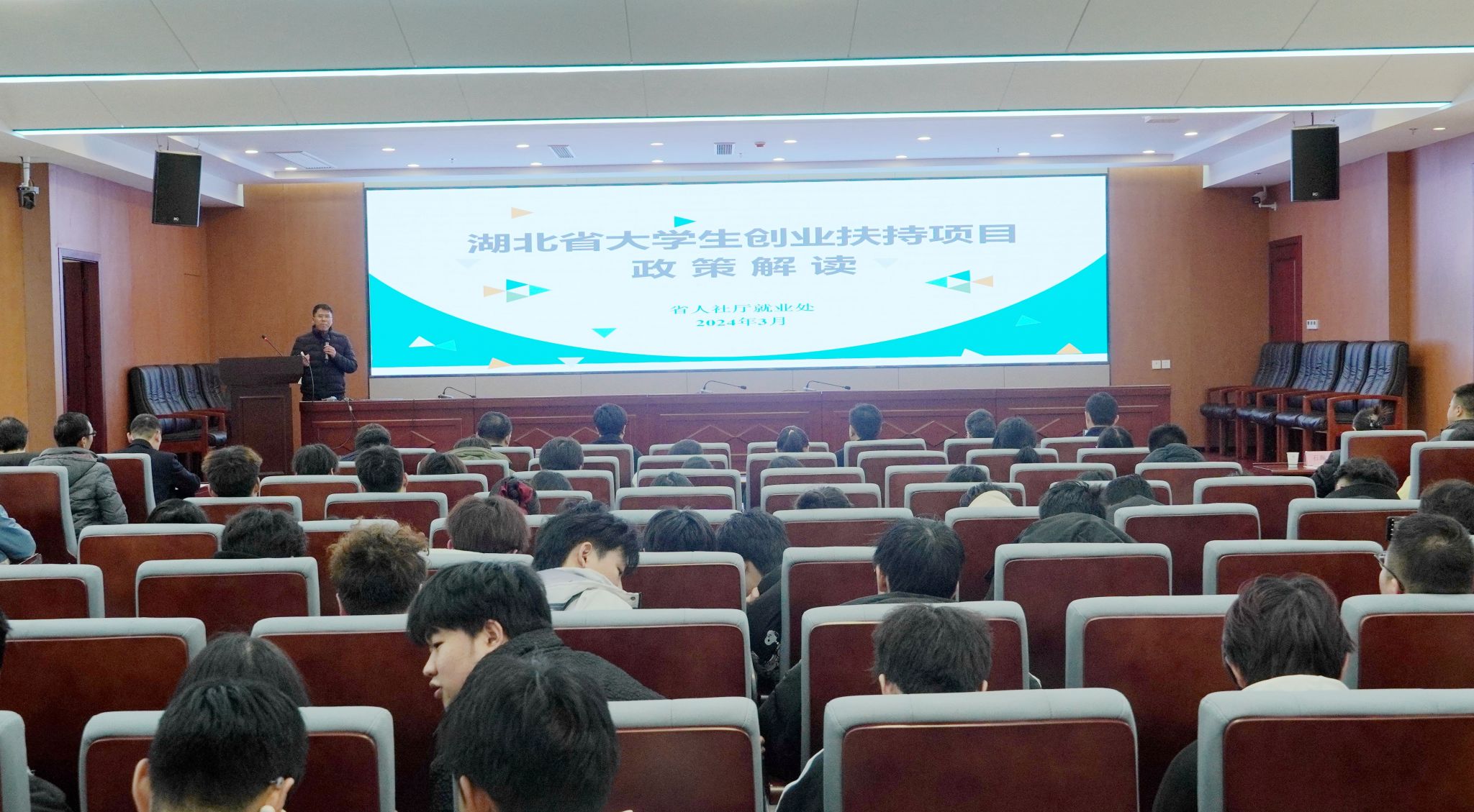 据悉,此次活动由湖北省人社厅指导,我校和十堰市人社局共同主办,旨在通过政策宣讲和学生创业实际分享,帮助大学生了解政策内容和申请流程,有效提高大学生的创业意识,增强就业创业能力,拓宽广大学生的就业创业思路和视野。