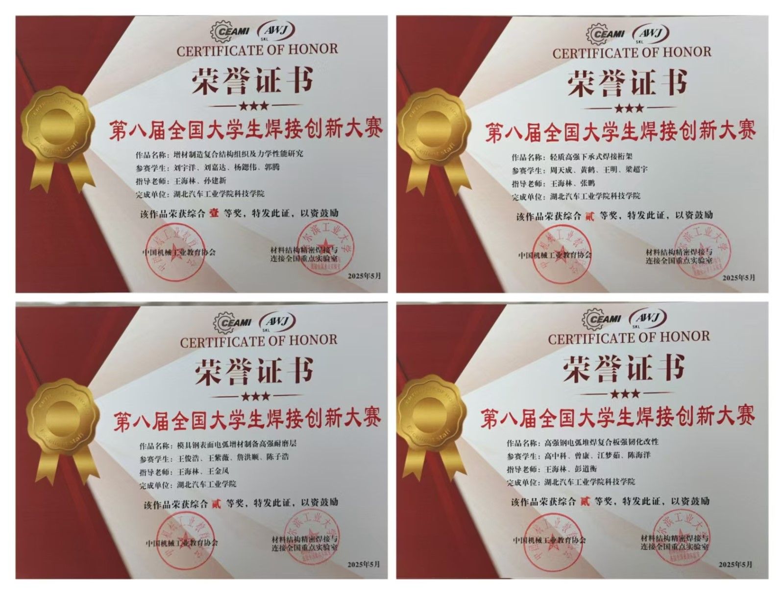 5月16日-18日,第八届全国大学生焊接创新大赛暨焊接技术与工程专业教学研讨会在西北工业大学启幕。我校由汽车材料学院教师王海林带队,选派8支队伍奔赴决赛现场,经过作品现场测试、选手答辩、专家提问评审等环节,最终斩获全国一等奖1项、二等奖3项、三等奖4项。