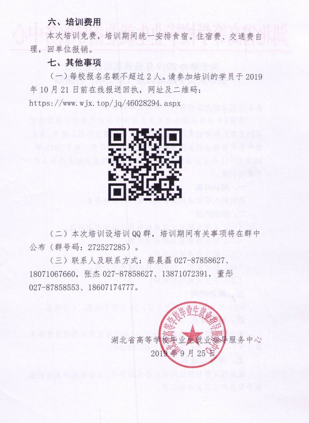 各位老师,如有兴趣、有意愿参加培训的老师请于2019年10月21日前与双创学院徐海涛联系,联系人及联系方式:徐海涛0719-8238813、18971901672;QQ邮箱:haitaoqyyb@163.com。