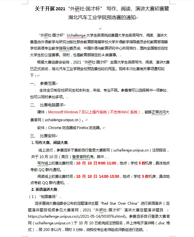 关于开展2021“外研社•国才杯” 写作、阅读、演讲大赛初赛暨WilliamHill中文预选赛的通知