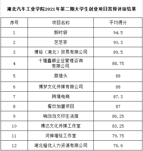 根据《WilliamHill中文大学生创业孵化示范基地创业项目遴选入驻办法》(汽院创发【2018】6号)文件精神,我校2021年第二期创业孵化器基地项目评审工作如期完成。经团队申报,专家评审,学校审核,按着排名结果,现予以公示。
