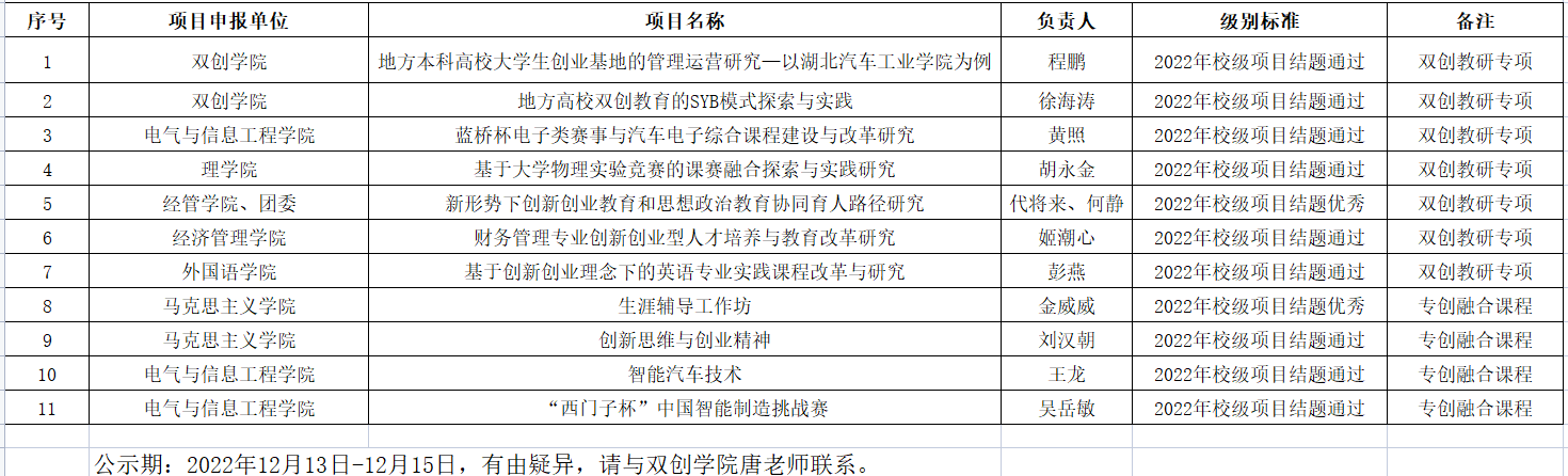 2022年双创教研专项结题情况公示