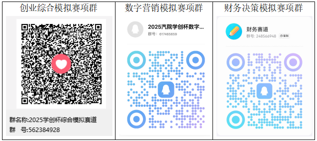 请参赛同学加入各赛道QQ群(比赛交流、通知),请各位同学入群后将昵称改为:专业班级+姓名。联系人:蔡老师15071590851、毛老 师15172288776、高老师13636209781。