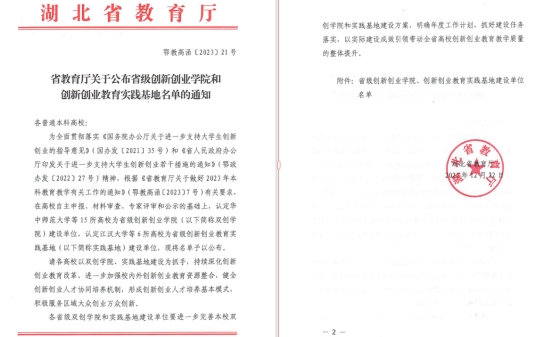 近日,湖北省教育厅公布了全省首批省级创新创业学院和省级创新威廉希尔教育基地建设项目名单。经学校申报、省教育厅评审,我校入选省级创新创业学院。